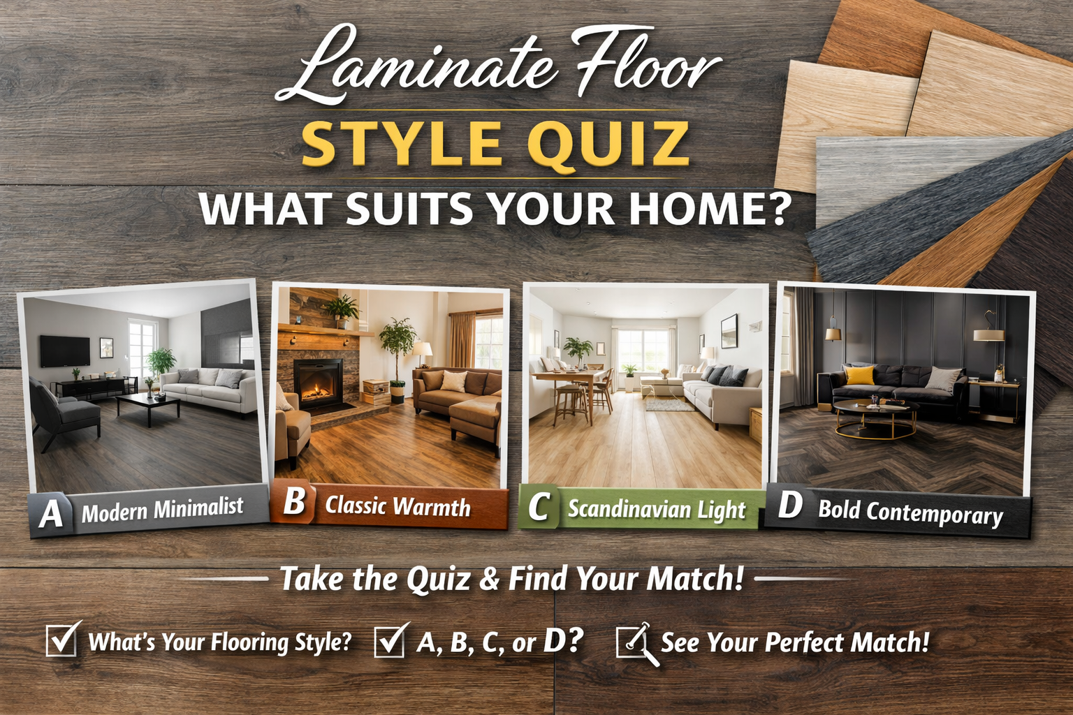 Not sure which laminate flooring style fits your space best? Take this quick quiz and discover the perfect look for your home!